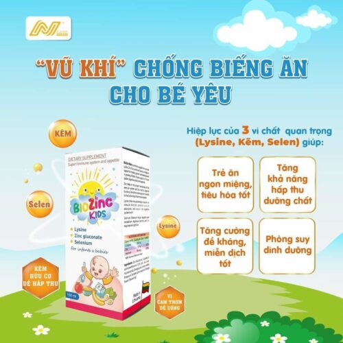 BIOZINC KIDS – Bổ sung Kẽm hữu cơ, Lysin, Selen cho cơ thể, hỗ trợ cải thiện chán ăn, hỗ trợ miễn dịch, hỗ trợ phát triển xương răng chắc khoẻ, phát triển trí não.
