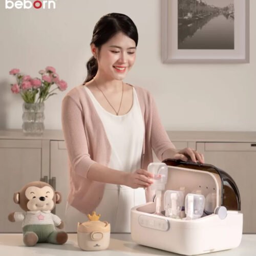 Với ngân sách dưới 1 triệu đồng thì để sắm một máy tiệt trùng UVC LEDs là một điều rất khó khăn. Hiểu được nỗi lòng này của nhiều mẹ bỉm, Beborn đã phát triển dòng máy úp bình tiệt trùng UVC, sấy khô & bảo quản. SB01 là dòng máy tiêu chuẩn 16L có khả năng chứa đến 6 bình sữa vừa đủ cho một căn phòng nhỏ hẹp và cũng chính là sản phẩm tiết kiệm nhất trên thị trường hiện nay. Mặc dù là dòng máy tiết kiệm nhưng SB01 trang bị 4 đèn LEDs đem lại hiệu quả tiệt trùng vượt trội hơn so với các dòng máy úp bình thông thường khác cùng với 4 lựa chọn cài đặt sấy khô và thời gian bảo quản lên tới 72 giờ giúp cho vật dụng ăn uống của bé luôn được giữ vô trùng trong điều kiện tốt nhất. Điểm nổi bật nữa là SB01 sở hữu màn hình LED điều khiển lớn, hiện đại giúp mẹ dễ dàng thao tác máy.
